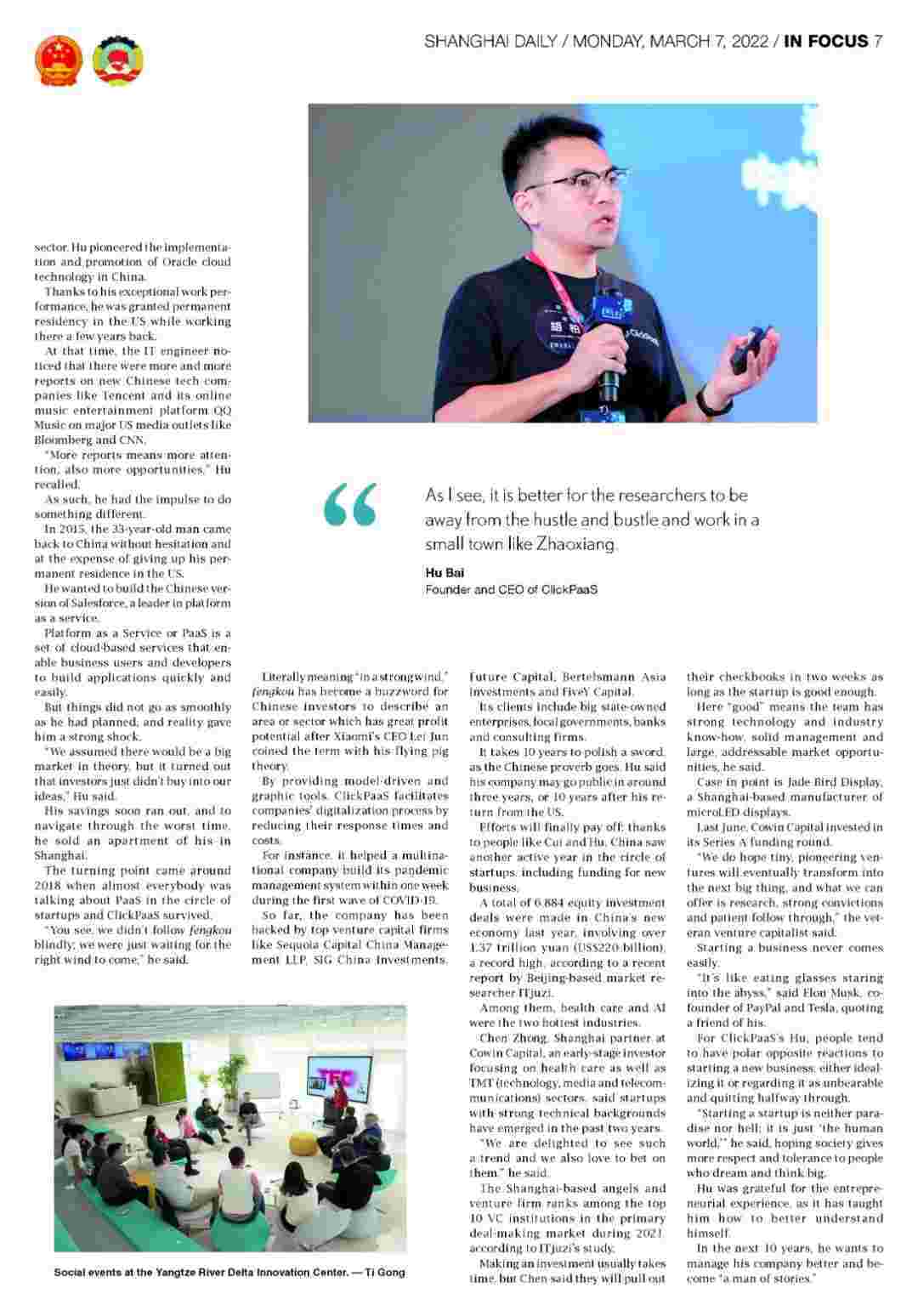 近日,,,,,,,,,小微钱包创始人、、、、、、、、、、、、、CEO胡柏接受了《上海日报》采访,,,,关于自己当初为何选择创立小微钱包,,,,又为何将公司落户于上海青浦,,,,,,,,,,,,,,分享了其背后的故事。。。。。。。。。